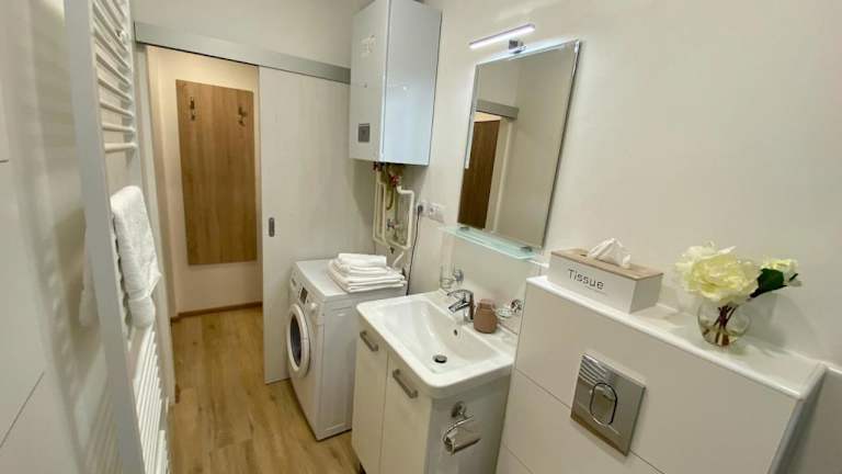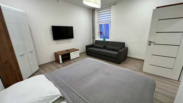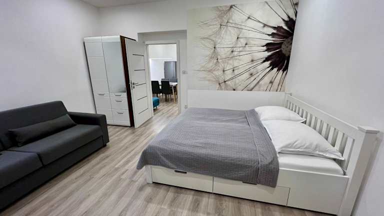 Die Ferienwohnung verfügt über ein Schlafzimmer, einen Flachbild-TV mit Satellitenkanälen, eine gut ausgestattete Küche mit Kühlschrank und Geschirrspüler sowie ein Badezimmer mit Dusche. Handtücher und Bettwäsche sind ebenfalls verfügbar.
