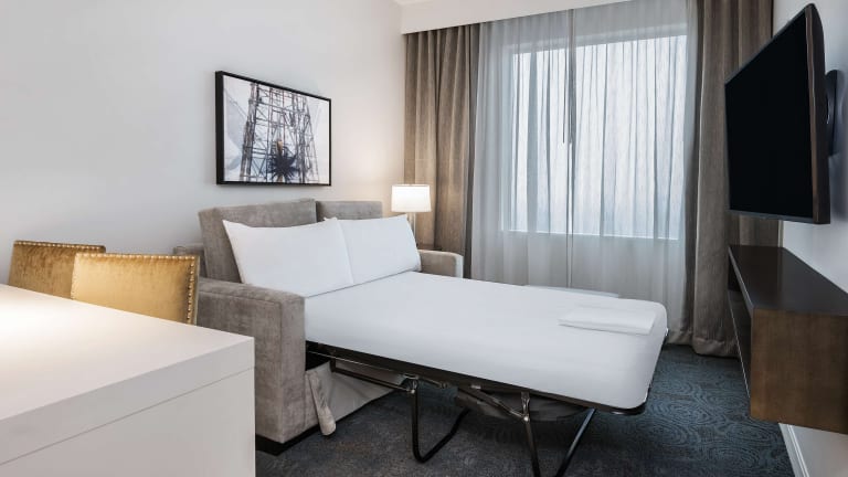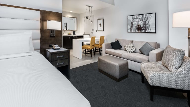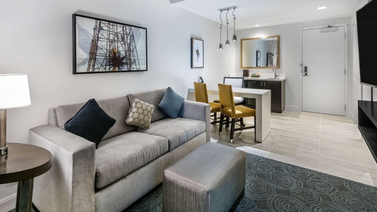 Die Zimmer im Embassy Suites by Hilton Houston West - Katy bieten einen komfortablen und geräumigen Aufenthalt. Jedes Zimmer verfügt über ein Wohnzimmer, ein eigenes Badezimmer und Annehmlichkeiten wie einen Fernseher, eine Mikrowelle und WLAN. Rollstuhlgerechte Zimmer mit barrierefreien Badezimmern sind ebenfalls verfügbar.