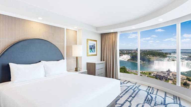 Das Embassy Suites by Hilton Niagara Falls Fallsview liegt ideal am Fallsview Boulevard im Fallsview-Touristenzentrum. Es ist nur wenige Schritte vom Niagara Fallsview Casino und den besten Restaurants und Attraktionen entfernt. Die Lage ist einfach atemberaubend, da das Hotel nur etwa 90 Meter vom Ufer der Niagara Falls entfernt liegt. Zusätzlich zu den beeindruckenden Wasserfällen gibt es in der Nähe des Hotels viele weitere Sehenswürdigkeiten wie den Schmetterlingspark Butterfly Conservatory, die Vergnügungsstraße Clifton Hill, die Ausflugsdampfer Maid of the Mist, den Tunnel Journey Behind the Falls, den Golfplatz Legends of the Niagara und das Niagara Fallsview Casino Resort.