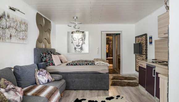 Die Ferienwohnung verfügt über ein Schlafzimmer, ein Wohnzimmer mit einem Satelliten Flachbild-TV, eine gut ausgestattete Küche sowie ein Badezimmer mit Dusche und Badewanne. Handtücher und Bettwäsche werden zur Verfügung gestellt.