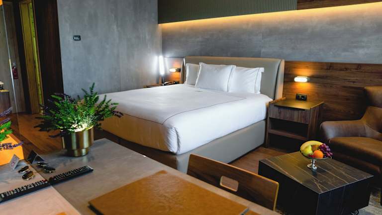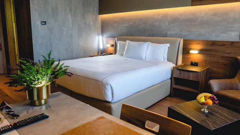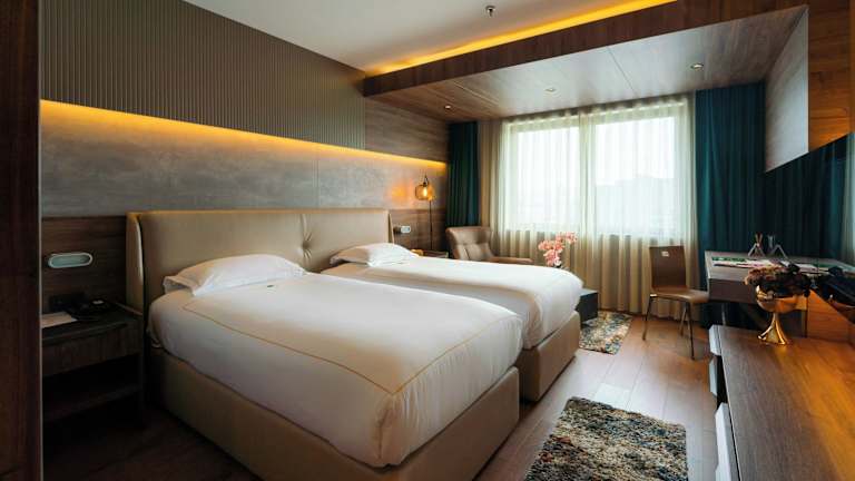 Die klimatisierten Zimmer sind schallisoliert und verfügen über ein Queensizebett, ein Sofabett sowie Zustellbetten auf Anfrage. Zur Ausstattung gehören eine Minibar, ein Minikühlschrank, eine Tee-/Kaffeemaschine, ein Telefon, ein TV-Gerät und kostenfreies WLAN. Jedes Badezimmer ist mit einer Dusche und einer Badewanne ausgestattet, und Hausschuhe stehen zur Verfügung. Barrierefreie Zimmer sind ebenfalls buchbar.