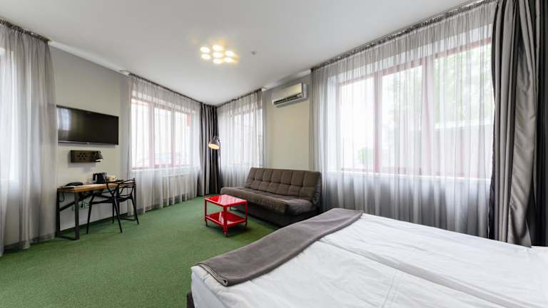 Das Emigrand Art Hotel in Uzhhorod ist die ideale Unterkunft in der Region Transkarpatien. Mit einem Restaurant, Zimmerservice und kostenfreiem WLAN bietet das Hotel alle Annehmlichkeiten für einen angenehmen Aufenthalt. Die klimatisierten Zimmer sind modern eingerichtet und verfügen über einen Schreibtisch, einen Safe, einen Flachbild-TV und ein eigenes Badezimmer. Starten Sie Ihren Tag mit einem köstlichen kontinentalen Frühstück. Die zentrale Lage des Hotels ermöglicht es Ihnen, die Sehenswürdigkeiten der Region bequem zu erkunden.