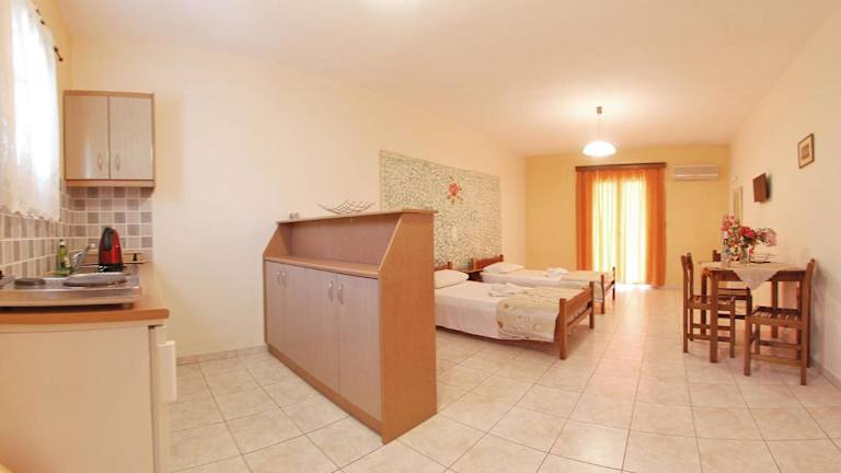 Die Emilia Apartments bieten Unterkünfte zur Selbstverpflegung mit einer voll ausgestatteten Küchenzeile, die einen Kühlschrank, Kochplatten und einen Essbereich umfasst. Jedes Studio und Apartment verfügt über einen eigenen Balkon, von dem aus Sie den Blick auf den Garten und das Ionische Meer genießen können. Klimaanlage und ein TV sorgen für zusätzlichen Komfort. Jede Unterkunft verfügt über ein eigenes Bad mit Dusche.