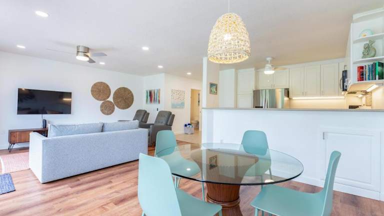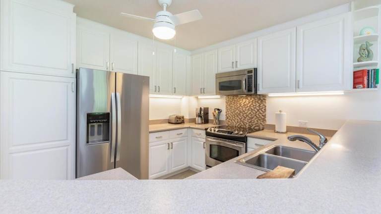 Das Emmalani 423 Condo bietet eine voll ausgestattete Küche, in der Sie Ihre eigenen Mahlzeiten zubereiten können. In der näheren Umgebung finden Sie auch verschiedene Restaurants und Cafés, in denen Sie lokale Spezialitäten und internationale Gerichte genießen können.