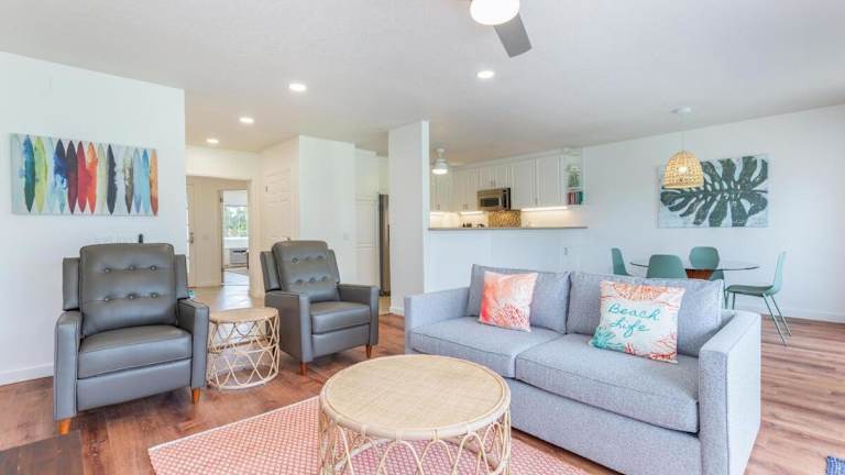 Das Emmalani 423 Condo verfügt über ein geräumiges Schlafzimmer, eine voll ausgestattete Küche mit einem Kühlschrank und einem Backofen sowie zwei Badezimmer mit Dusche. Das Apartment bietet auch einen komfortablen Sitzbereich und einen TV für entspannte Abende. Mit kostenfreiem WLAN und Klimaanlage ist das Apartment gut ausgestattet, um Ihnen einen angenehmen Aufenthalt zu bieten.