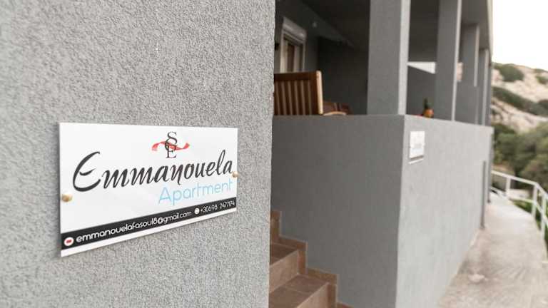 Das Emmanouela Apartment bietet eine Ferienwohnung mit Klimaanlage, zwei Schlafzimmern und einem Wohnzimmer. Zur Ausstattung gehören eine voll ausgestattete Küche sowie ein Badezimmer mit Dusche. Zudem bietet die Unterkunft eine Terrasse und einen Balkon mit Meer- und Bergblick. Kostenloses WLAN ist verfügbar.