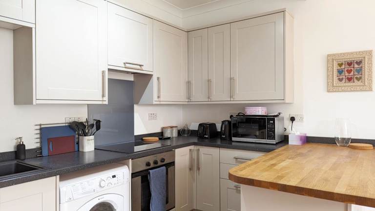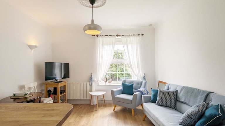 Die Unterkunft besteht aus 2 Schlafzimmern und einem Wohnzimmer, ausgestattet mit einem Flachbild-TV. Die Küche ist mit einem Kühlschrank und einem Ofen ausgestattet.