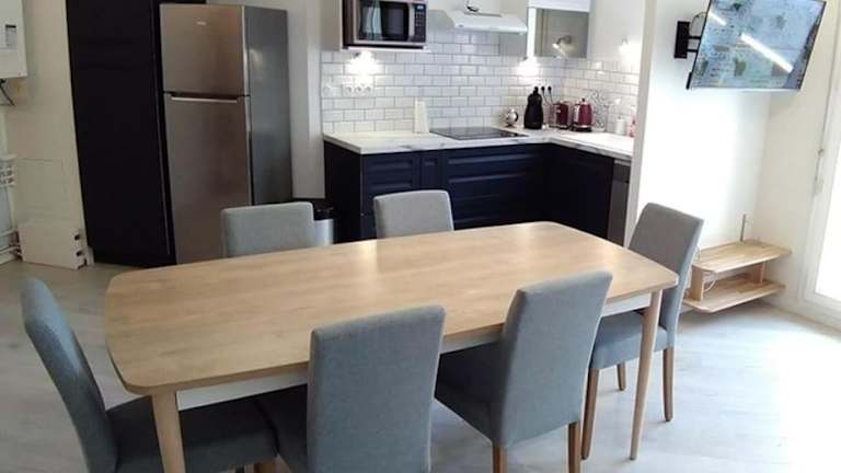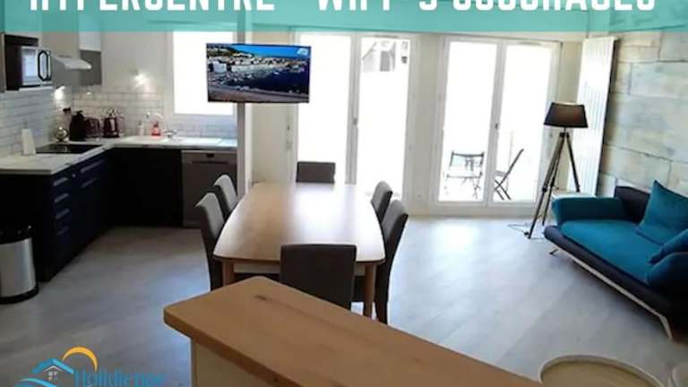 En famille à Dieppe by Holidieppe bietet Übernachtungsmöglichkeiten in einer Ferienwohnung, die mit kostenlosem WLAN und einem Flachbild-TV ausgestattet ist. Die Unterkunft besteht aus zwei Schlafzimmern, einem Wohnzimmer und einer voll ausgestatteten Küche. Ein Balkon ist ebenfalls vorhanden. Die Ferienwohnung ist von einem privaten Gastgeber geführt, und Feiern wie Junggesellenabschiede sind nicht gestattet.