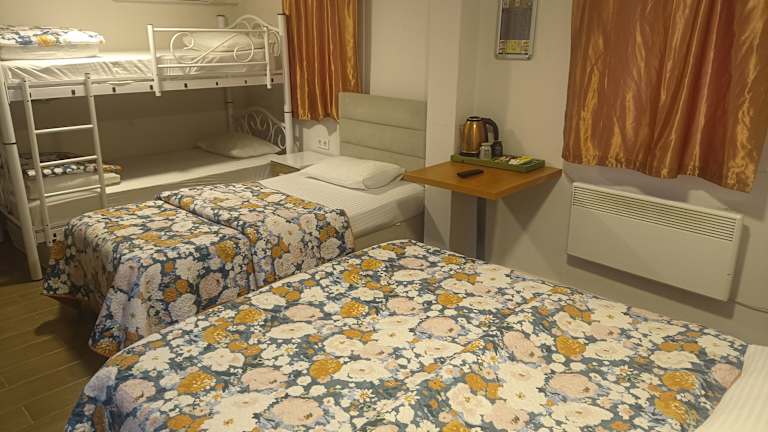 Die Zimmer sind mit Klimaanlage, Heizung und kostenlosem WLAN ausgestattet. Zur Ausstattung gehört ein eigenes Badezimmer mit Dusche und Badewanne, sowie ein Haartrockner. Zusätzlich sind Familien- und Nichtraucherzimmer verfügbar.