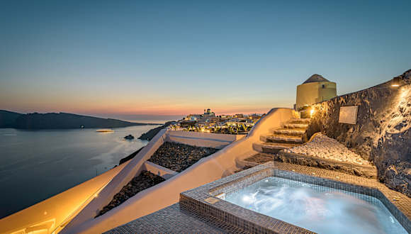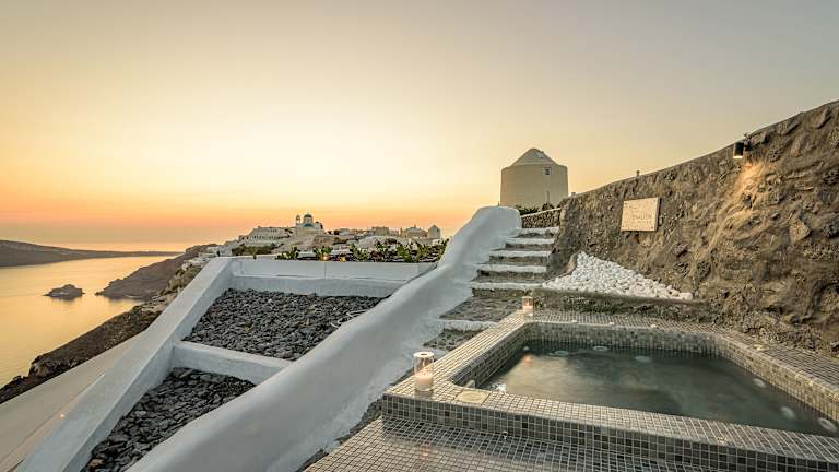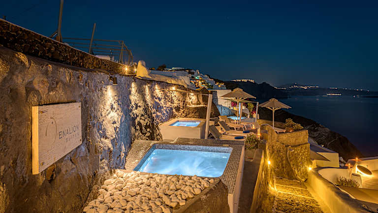 Das Enalion Suites ist ein charmantes Hotel, das sich in bevorzugter Lage in der Caldera von Santorin befindet. Es bietet traditionell eingerichtete Suiten mit herrlichem Blick auf den Vulkan. Hier können Sie in den gemeinschaftlich genutzten Whirlpools im Freien entspannen und die Schönheit der Umgebung genießen. Das Hotel bietet auch eine günstige Anbindung an das Zentrum von Oia und andere Sehenswürdigkeiten. WLAN und kostenfreie Parkplätze stehen zur Verfügung, um Ihren Aufenthalt angenehm und bequem zu gestalten.