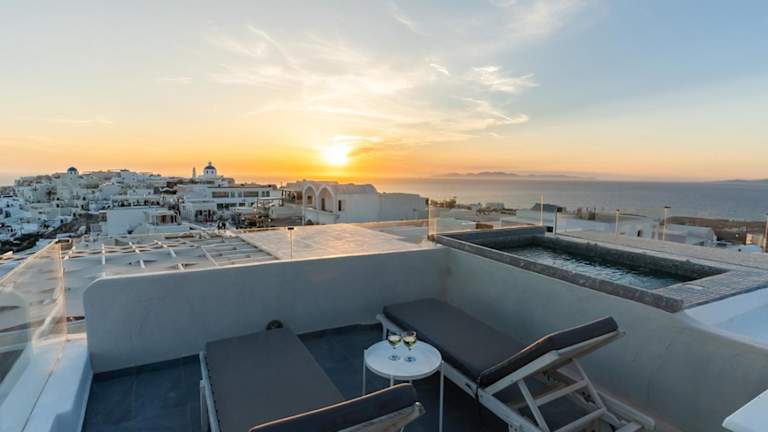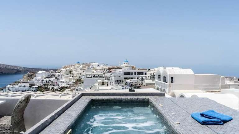 Das Enalion White Suites Oia in Oia bietet seinen Gästen einen luxuriösen Aufenthalt mit atemberaubender Aussicht auf das Meer und die Stadt. Jede Suite verfügt über eine eigene Terrasse oder einen Balkon mit Blick auf die Caldera und ein privates Whirlpool auf dem Balkon. Die Unterkunft ist modern eingerichtet und verfügt über eine Küchenzeile sowie ein eigenes Badezimmer. Kostenloses WLAN steht in der gesamten Unterkunft zur Verfügung. Bei der Ankunft erhalten die Gäste einen Willkommenskorb mit Keksen, Saft und Obst. Das Hotel liegt in der Nähe von Stränden, Museen und dem Hafen von Koufonissia. Der Flughafen Santorini (Thira) ist ebenfalls leicht erreichbar.