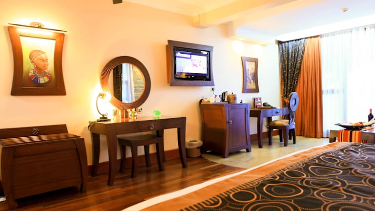 Das Enashipai Resort & Spa in Naivasha bietet seinen Gästen einen luxuriösen Aufenthalt mit Blick auf den malerischen Lake Naivasha. Hier können Sie sich im Außenpool entspannen und das kostenfreie WLAN nutzen. Die geschmackvoll eingerichteten Executive Zimmer im afrikanischen Stil verfügen über Annehmlichkeiten wie einen Flachbild-TV, einen Ventilator und Kaffee- und Teezubehör. Die privaten Badezimmer sind mit einer Badewanne, einer Dusche und Bademänteln ausgestattet. Genießen Sie gehobene Küche im Senteu Restaurant oder gönnen Sie sich Getränke und Snacks an der Ol'Tepesi Bar und der Lakeside Bar. Das Resort bietet auch eine Kaffeelounge und einen Grillplatz. Im Siyara Spa können Sie sich mit verschiedenen Anwendungen verwöhnen lassen. Zu den weiteren Einrichtungen gehören ein Tennisplatz, ein voll ausgestattetes Fitnesscenter und ein Nachtclub. In der Umgebung können Sie verschiedene Aktivitäten wie Wandern, Bergsteigen und Vogelbeobachtung unternehmen. Sehenswürdigkeiten wie der Nationalpark Hells Gate und der Berg Longonot sind etwa 29 km entfernt und einen Besuch wert. Das Resort liegt 106 km vom Flughafen Jomo Kenyatta entfernt.