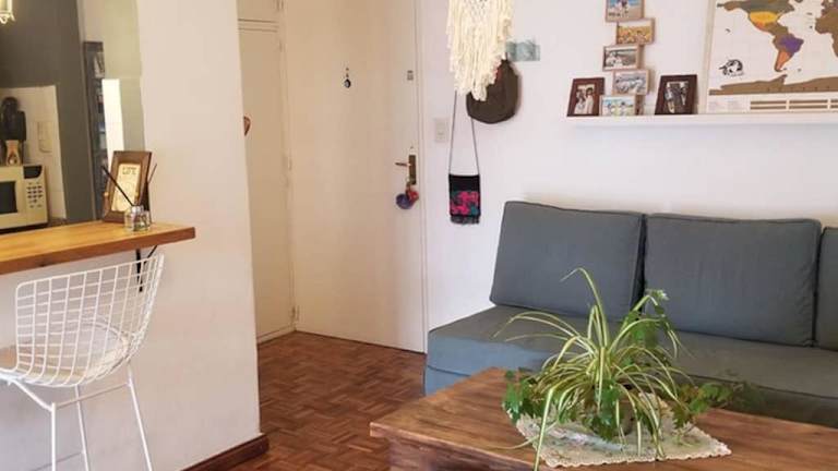 Das klimatisierte Apartment im Encantador Departamento verfügt über ein Schlafzimmer, ein Wohnzimmer und eine voll ausgestattete Küche. Die moderne Einrichtung und der Balkon bieten einen angenehmen Aufenthalt und Stadtblick. Handtücher und Bettwäsche werden gestellt, um den Gästen maximalen Komfort zu bieten.
