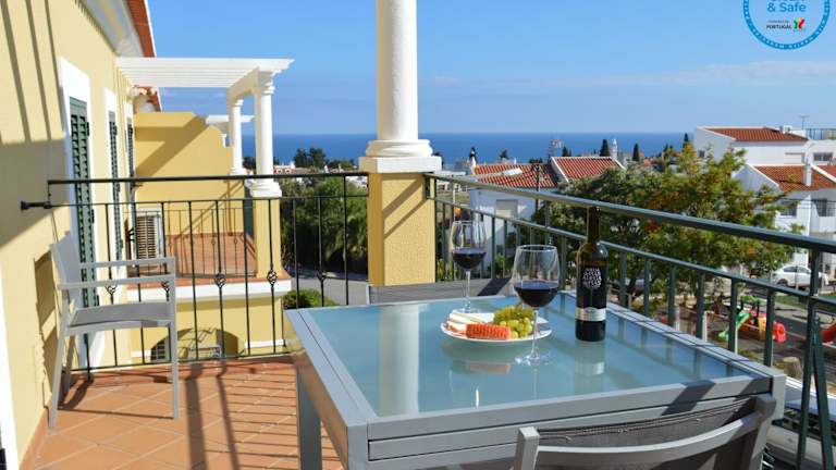 Die Unterkunft Encantador T1 praia Senhora da Rocha - Algarve bietet einen Außenpool, einen Garten und eine Terrasse. Es handelt sich um eine Ferienwohnung, die kostenloses WLAN und einen Blick auf das Meer bereitstellt.