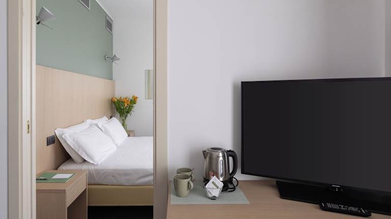Der Frühstücksbereich bietet sowohl kontinentale als auch italienische Optionen in Buffetform an. Eine Bar steht ebenfalls zur Verfügung, in der Gäste Erfrischungen genießen können.