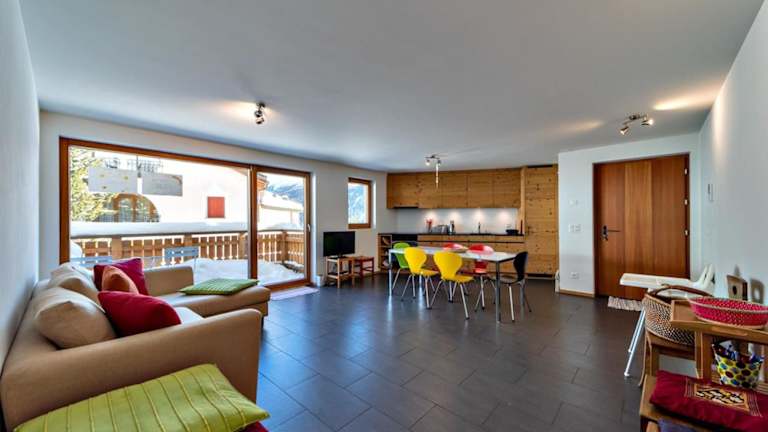 Engadina Chesa Gluna - Madulain bietet Übernachtungsmöglichkeiten in Form einer Ferienwohnung mit verschiedenen Annehmlichkeiten, darunter kostenfreies WLAN und einen TV.
