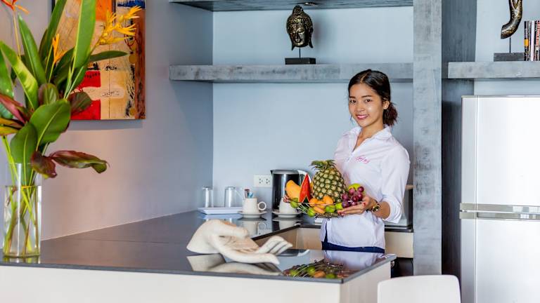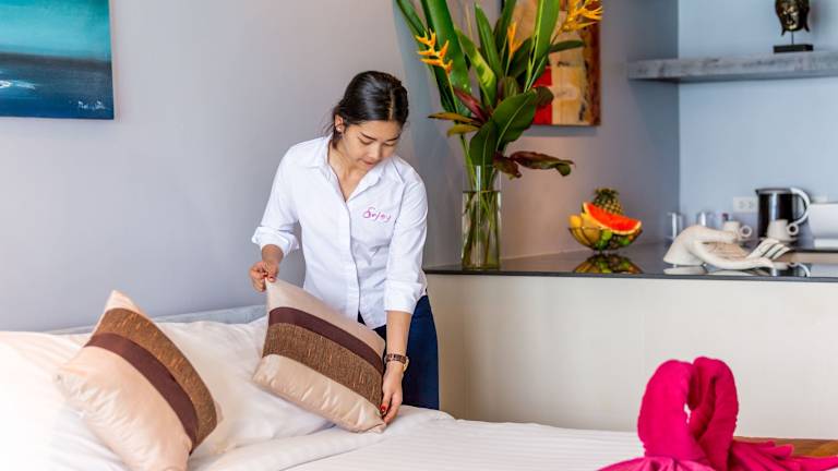 Das Enjoy Beach Hotel liegt in Bo Phut, nur eine kurze Fahrt von den Stränden von Chaweng und Lamai entfernt. Es ist ideal für Reisende, die gerne in der Nähe des Wassers sind und dennoch die Annehmlichkeiten der Stadt in Reichweite haben möchten. In unmittelbarer Nähe befinden sich der Fisherman's Village Plaza und der Pier am Strand von Bo Phut.