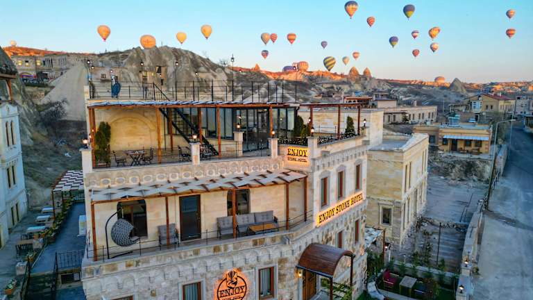 Das Enjoy Stone Hotel liegt in Göreme, weniger als 3,6 km von Uçhisar Kalesi und 6,7 km vom Zelve Open Air Museum entfernt. Die Umgebung bietet zahlreiche historische und touristische Attraktionen wie das Nikolos Monastery und das Ürgüp-Museum. Der nächste Flughafen ist der Flughafen Nevşehir-Kapadokya, der sich 38 km entfernt befindet.
