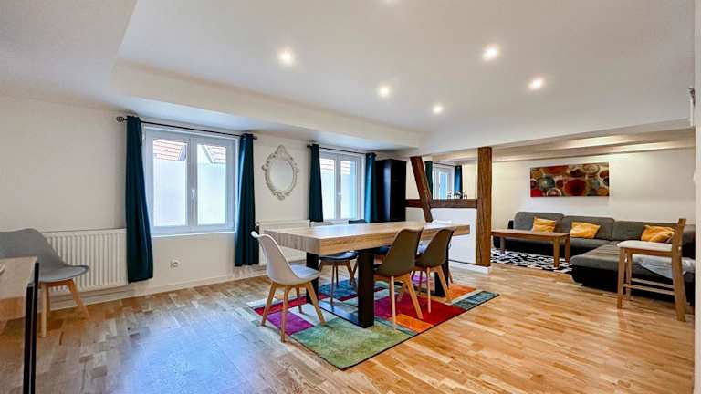 Epfig Maison ist ein Ferienhaus, das Zugang zu einer Gemeinschaftslounge, einer Terrasse und einer Gemeinschaftsküche bietet. Es handelt sich um eine privat geführte Unterkunft, in der Feiern wie Junggesellenabschiede nicht gestattet sind. Der Check-in ist ab 15:00 bis 18:00 Uhr möglich, während der Check-out zwischen 08:00 und 11:00 Uhr erfolgt. Die Unterkunft heißt Nichtraucher und ist für Familien geeignet.
