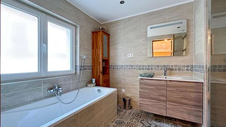 Das Ferienhaus verfügt über 4 Schlafzimmer, ein Wohnzimmer, eine voll ausgestattete Küche mit Kühlschrank und Kaffeemaschine sowie 2 Badezimmer mit Dusche und Badewanne. Handtücher und Bettwäsche können gegen Aufpreis bereitgestellt werden.