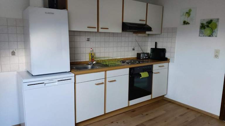 Das Apartment verfügt über ein gemütliches Schlafzimmer, ein geräumiges Wohnzimmer mit einem Flachbild-Sat-TV und eine voll ausgestattete Küche mit Kühlschrank und Backofen. Das Badezimmer ist mit einem Haartrockner ausgestattet. Handtücher und Bettwäsche werden Ihnen im Apartment zur Verfügung gestellt, um Ihren Aufenthalt so angenehm wie möglich zu gestalten.
