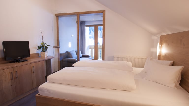 Komfortabel einquartiert im Familien-Erlebnishotel Fendels - man könnte sagen - die richtige Basis um erholt in den Urlaub zu starten. In unserem Haus stehen folgende Zimmertypen zur Verfügung. • Einzelzimmer, 2 Personen: 12 qm, Du/WC, Radio, Telefon, Sat TV Grundriss/Bild • Zimmer Typ B, 3 Personen: 18 qm, Du/WC, Radio, Telefon, Sat TV, Balkon Grundriss/Bild • Zimmer Typ A, 4 Personen: 25 qm, Du/WC, Radio, Telefon, Sat TV, Balkon, Safe Grundriss/Bild • Zimmer Typ L, 4 Personen: 25 qm, Du/WC, Radio, Telefon, Sat TV, Südwestbalkon, Komfortcouch, Safe Grundriss/Bild • Juniorsuite, 4 Personen: 35 qm, Dusche, WC getrennt, Radio, Telefon, 2 Sat TV, Südbalkon, Safe, 2 getrennte Schlafräume durch eine Glasschiebetür Grundriss/Bild • Suite I, 4 Personen: 40 qm, Du und Bad, WC getrennt, Radio, Telefon, 2 Sat TV, Südbalkon, Safe, 2 getrennte Schlafräume durch eine Glasschiebetür Grundriss/Bild | 360° Panorama • Suite II, 4 Personen: 43 qm, Du und Bad, WC getrennt, Radio, Telefon, 2 Sat TV, Südbalkon, Safe, 2 getrennte Schlafräume durch eine Türe Grundriss/Bild • Juniorsuite III, 6 Personen 65 qm, 2 x Du/WC, Radio, Telefon, 3 Sat TV , Südbalkon, Safe, 2 getrennte Schlafräume Grundriss/Bild