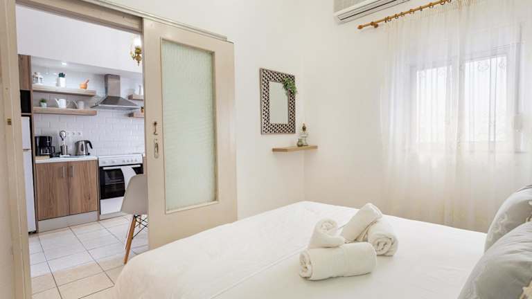 Das Erofili House bietet eine authentische Erfahrung mit traditionellen kretischen Möbeln in einem gemütlichen und komfortablen Raum. Das klimatisierte Schlafzimmer verfügt über eine komplett ausgestattete Küche und einen separaten Sitzbereich mit einem Flachbild-TV. Von der Terrasse aus können Sie die schöne Aussicht auf das Meer und die Stadt bewundern. Die Unterkunft bietet auch kostenfreies WLAN in allen Bereichen.