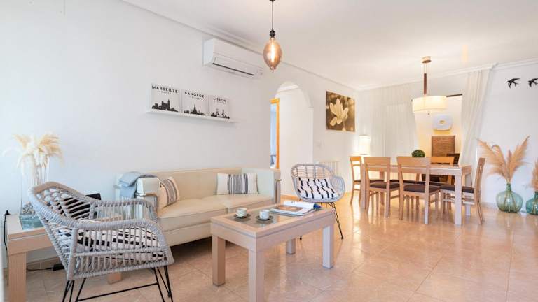 Die Ferienwohnung umfasst zwei Schlafzimmer, ein Wohnzimmer und eine voll ausgestattete Küche mit Kühlschrank. Es stehen zwei Badezimmer mit Bidet und Haartrockner zur Verfügung. Zusätzlich ist ein TV in der Unterkunft vorhanden. Klimaanlage ist in der gesamten Ferienwohnung verfügbar.