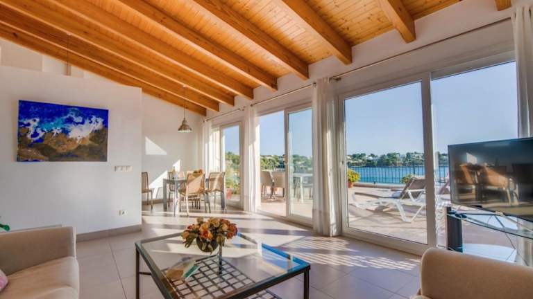Das Es Port penthouse ist mit zwei Schlafzimmern und zwei Badezimmern ausgestattet. Zur weiteren Ausstattung gehören Bettwäsche, Handtücher, ein TV mit Satellitenkanälen sowie eine voll ausgestattete Küche. Eine Terrasse mit Meerblick sorgt für zusätzlichen Komfort.