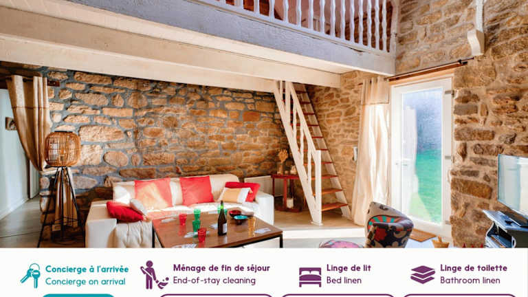 Escapade dans une belle longere a Penmarch ist ein Ferienhaus, das Ruhe und Komfort in einer ländlichen Umgebung bietet. Die Unterkunft ist von einem Garten umgeben und bietet kostenfreies WLAN.