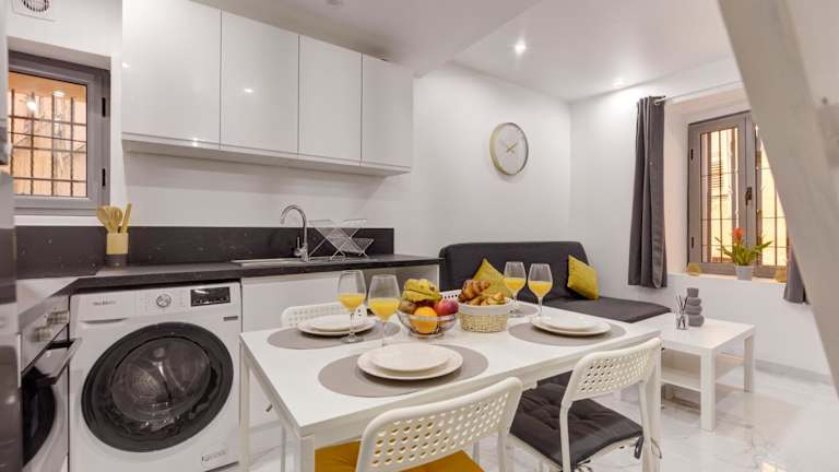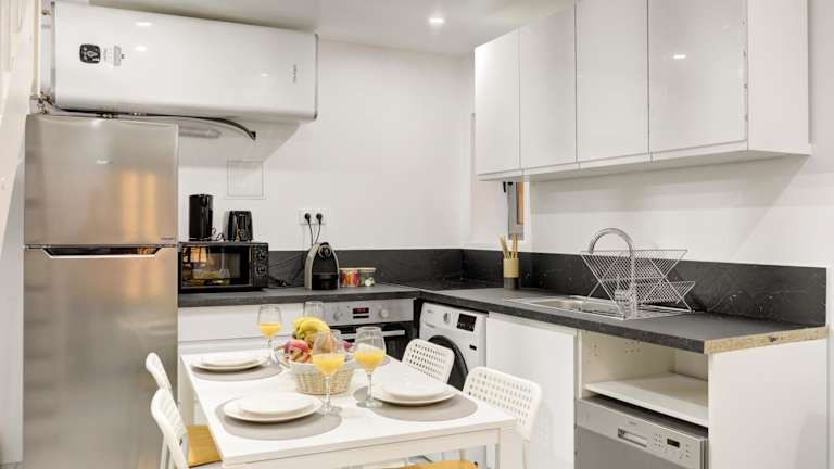 Die Ferienwohnung ist mit einer gut ausgestatteten Küche ausgestattet, die einen Kühlschrank und Geschirrspüler umfasst. Weitere Informationen zu Verpflegungsmöglichkeiten liegen nicht vor.