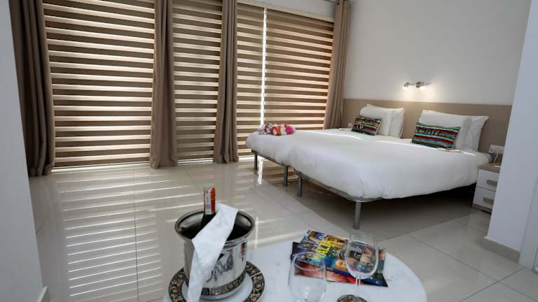 Die Zimmer sind ausgestattet mit einem Satelliten-Flachbild-TV, einer voll ausgestatteten Küche, die einen Kühlschrank, Ofen, Mikrowelle, Toaster und Wasserkocher umfasst. Zudem gibt es ein eigenes Badezimmer mit Dusche und kostenlosen Pflegeprodukten.