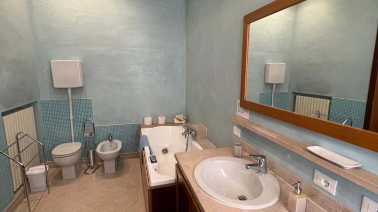 Die Ferienwohnung umfasst 3 Schlafzimmer, ein Wohnzimmer sowie eine voll ausgestattete Küche mit Kühlschrank und Kaffeemaschine. Sie verfügt über 2 Badezimmer mit Bidet und Whirlpool. Handtücher und Bettwäsche sind vorhanden, und die Wohnung ist klimatisiert.