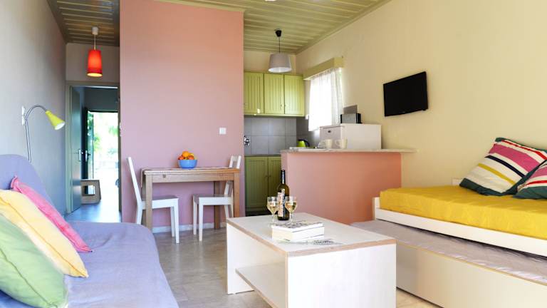 Die familiengeführten Apartments im Hotel Esperides sind geräumig und komfortabel gestaltet und bieten Platz für bis zu vier Personen. Jedes Apartment besteht aus einem Schlafzimmer mit einem Queensize-Bett und einem Wohnzimmer mit zwei Einzelbetten und einem Schlafsofa. Eine voll ausgestattete Küche und ein Badezimmer sind ebenfalls vorhanden. Die Apartments sind mit Klimaanlage, Elektroherd, Kühlschrank, Kaffeemaschine, TV und DVD-Player ausgestattet und bieten alle Annehmlichkeiten für einen angenehmen Aufenthalt. Ein kostenloser Parkplatz steht den Gästen zur Verfügung. Auf Anfrage können gegen Aufpreis auch Massagen, Nagelpflege und Babysitting arrangiert werden.