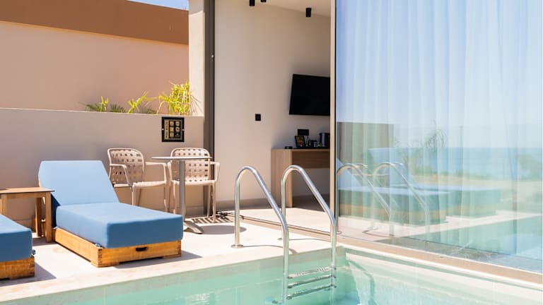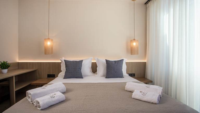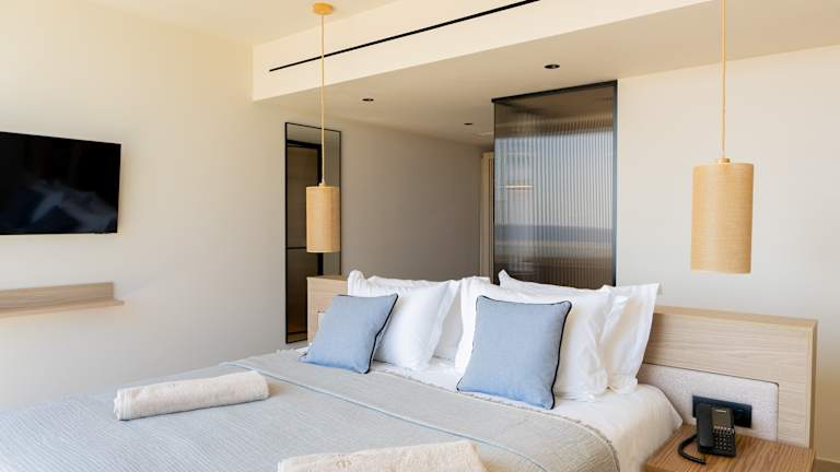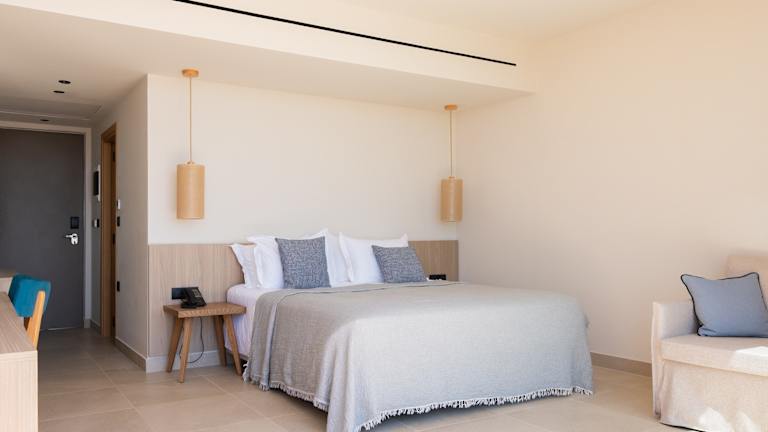 Die Zimmer sind klimatisiert und bieten eine umfassende Ausstattung, darunter einen Schreibtisch, eine Kaffeemaschine, einen Kühlschrank, eine Minibar, einen Safe, einen Flachbild-TV, eine Terrasse sowie ein eigenes Badezimmer mit Dusche. Einige Zimmer sind mit einem Balkon ausgestattet. Die Unterkünfte sind mit weiteren Annehmlichkeiten wie einem Wasserkocher und einem Kleiderschrank versehen.