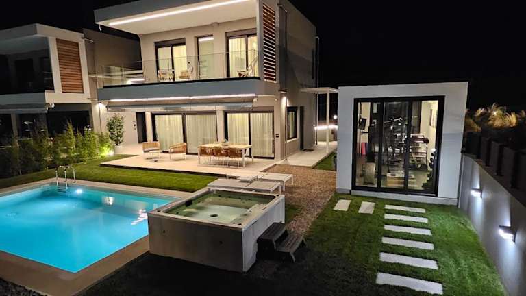 Estellar Villas bietet eine Unterkunft mit kostenlosem WLAN und einem Garten mit Außenpool. Die Unterkunft umfasst klimatisierte Zimmer mit Zugang zu einem Fitnessraum und einem Whirlpool. Ein Spa-Center ist ebenfalls Teil des Angebots, und die Gäste können sich auf einer Terrasse mit Meerblick entspannen.