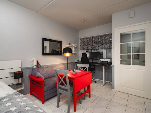 Die Ferienwohnung verfügt über 1 klimatisiertes Schlafzimmer und ein Badezimmer, das mit einem Bidet, einer Dusche und einem Haartrockner ausgestattet ist. Die Küche beinhaltet einen Kühlschrank, einen Geschirrspüler, eine Mikrowelle, eine Kaffeemaschine und einen Wasserkocher.