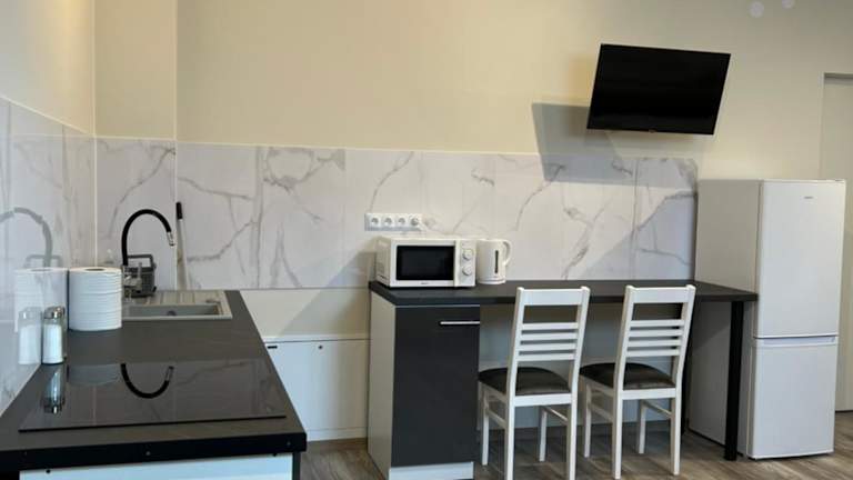 Die Apartments verfügen über eine voll ausgestattete Küche mit einem Essbereich, einem Kühlschrank, einer Mikrowelle, einer Herdplatte und einem Wasserkocher, die eine Selbstversorgung ermöglichen.