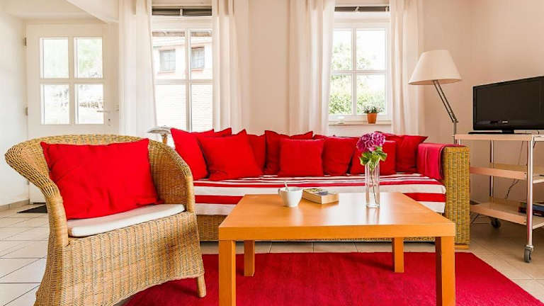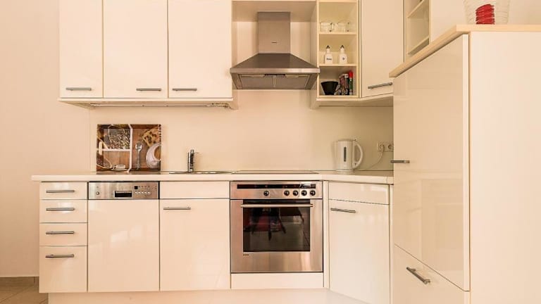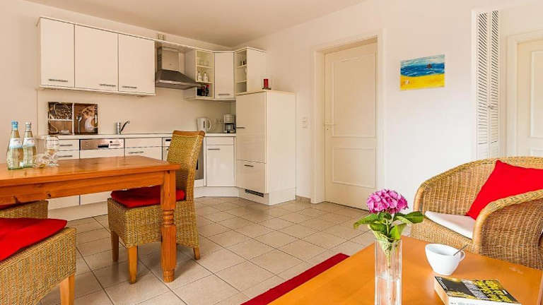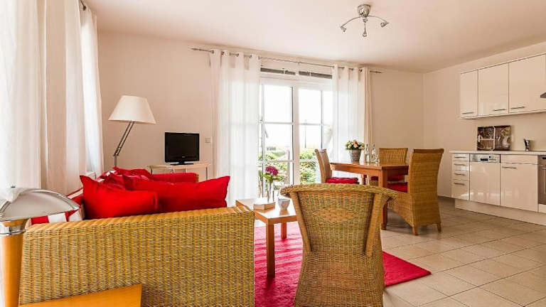 Die Ferienwohnung verfügt über ein Schlafzimmer, einen TV mit Satellitenkanälen und eine voll ausgestattete Küche. In der Küche finden sich ein Kühlschrank, ein Geschirrspüler, eine Waschmaschine, ein Ofen sowie eine Herdplatte.