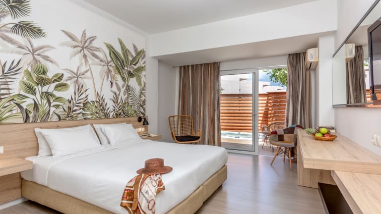 Hauptgebäude 46 Doppelzimmer Größe: 22m2 Belegung: 2 Erwachsene + 1 Kind max. Bungalows 40 Doppelzimmer Größe: 22m2 Belegung: 2 Erwachsene + 1 Kind max. Total: 140 Zimmer Familienzimmer 54 Zimmer Größe: 35 – 40m2 Belegung: 4 Erwachsene max. • Voll klimatisiert / Kühlung & Heizung individuell regulierbar • Möblierte Balkone oder Terrassen • Badezimmer mit Badewanne oder Dusche • Direktwahltelefon • Weckrufe • Mini-Kühlschrank • Balkon oder Terrasse • Safe (gegen Gebühr) • Haartrockner