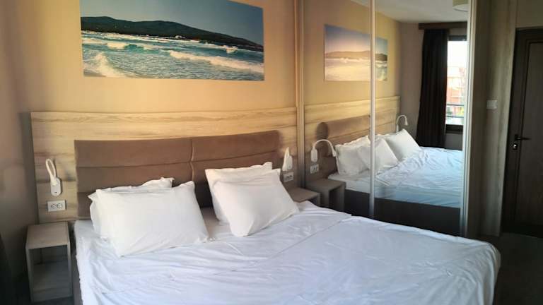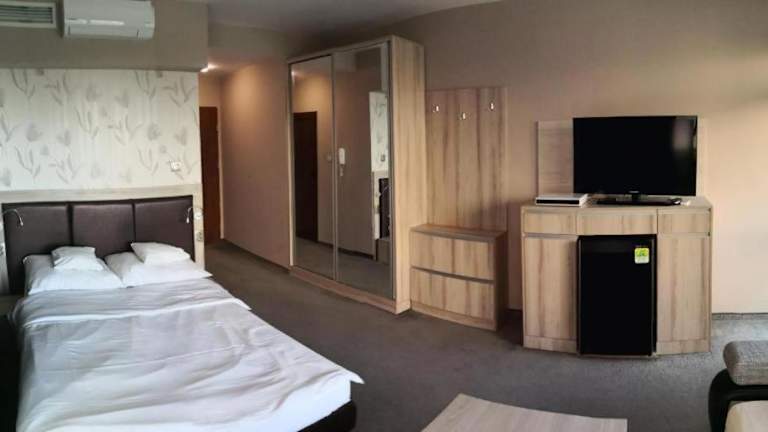 Die Zimmer im euroHOTEL Primorsko sind komfortabel und bieten alles, was Sie für einen angenehmen Aufenthalt benötigen. Jedes Zimmer verfügt über Klimaanlage, einen Kleiderschrank, einen Flachbild-TV und ein eigenes Badezimmer. Die Zimmer sind geschmackvoll eingerichtet und bieten Bettwäsche, Handtücher und einen Balkon mit Blick auf den Pool. Ein Kühlschrank ist ebenfalls vorhanden, um Ihre Getränke und Snacks kühl zu halten.