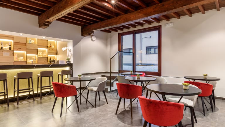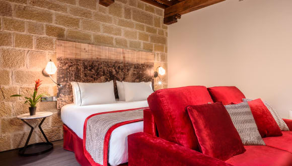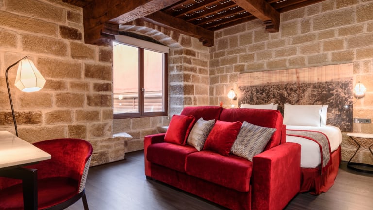 Ein Spaziergang entlang der Ruavieja des alten Stadtkerns von Logroño ähnelt einer Zeitreise, während der man die Geschichte der Stadt anhand der alten Gebäude und gepflasterten Straßen spüren kann. Im Eurostars Fuerte Ruavieja 4* können Sie die Essenz eines klassischen Gebäudes und einer praktischen und modernen Innenausstattung genießen, bei der die Schönheit und die architektonischen Charakteristika des ursprünglichen Gebäudes bewahrt wurden. An der Eingangstür aus Holz, die noch immer den originalen Halbkreis bewahrt, können Sie bereits die strukturellen Elemente entdecken, die auch im Inneren des Gebäudes erhalten wurden, wie zum Beispiel die Steinmauren und Holzbalken, die den Räumlichkeiten des Eurostars Fuerte Ruavieja 4* einen einzigartigen Charakter verleihen. Zu dem Charme dieses Gebäudes kommen die erstklassigen Ausstattungen des Hotels hinzu, wie zum Beispiel die Saune, die türkischen Dampfbäder, das Fitnessstudio und die Bar-Cafeteria. Die 30 Zimmer sind unter anderem mit Minibar, LCD-TV, Safe und Badutensilien ausgestattet, um den Gästen einen einzigartigen und komfortablen Aufenthalt zu gewährleisten.