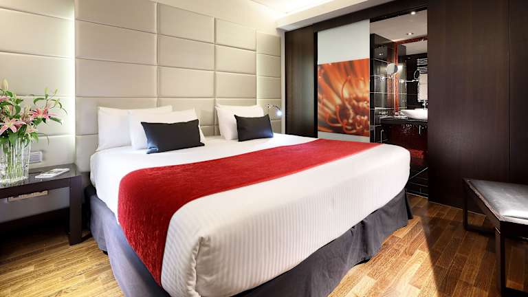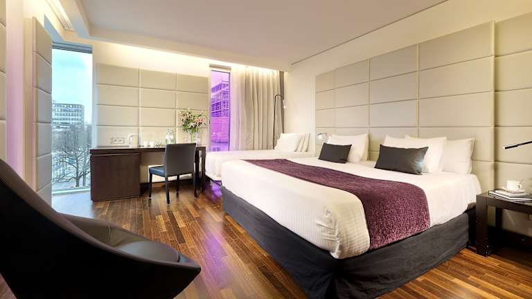 Die Zimmer sind schallisoliert und bieten eine Klimaanlage sowie eine individuell einstellbare Heizung. Ausgestattet sind sie mit einem Doppelbett, Queensize-Bett, Kingsize-Bett oder Sofabett. Jedes Zimmer verfügt über einen Safe, eine Minibar, einen Schreibtisch, eine Tee-/Kaffeemaschine, ein Telefon, ein TV-Gerät mit Satellitenempfang und WLAN. Die Badezimmer sind mit einer Dusche und Badewanne ausgestattet, ergänzend stehen ein Haartrockner und ein Kosmetikspiegel zur Verfügung. Ein Bügelset ist ebenfalls vorhanden. Es gibt rollstuhlgerechte Zimmer sowie Familien- und Raucherzimmer.