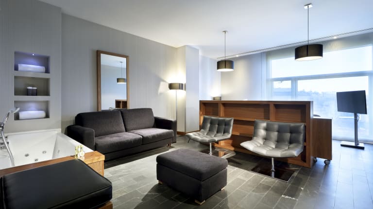 Im Herzen der Geschäftsgegend Alcobendas gelegen, bietet das Eurostars Madrid Congress eine luxuriöse Unterkunft mit erstklassigen Ausstattungen und Serviceleistungen. Die Zimmer und Suiten sind geräumig und hell und laden dank einem gemütlichen Ambiente zum Entspannen ein. Sie umfassen zahlreiche Serviceleistungen, unter anderem WLAN, Klimaanlage, Pflegeprodukte um Bad, Badewanne, Safe, Schreibtisch, Minibar, Haartrockner und Satelliten-TV. Das Hotel bietet ein großes Business Centre mit 20 verschieden großen Sälen, sowie zwei Terrassen. Diese Räumlichkeiten können alle möglichen Events beherbergen, von Geschäftstreffen bis hin zu privaten Feierlichkeiten. Außerdem umfasst das Hotel ein elegantes Restaurant, mit einem Menü, das die typischen Tapas mit orientalisch inspirierten Gerichten kombiniert. Zu den Services des Hotels zählt ein überdachter Parkplatz, Mietwagen, Bar-Cafeteria, Fitnessraum, Wäschereinigung und Gepäckaufbewahrung.