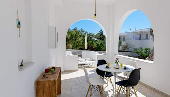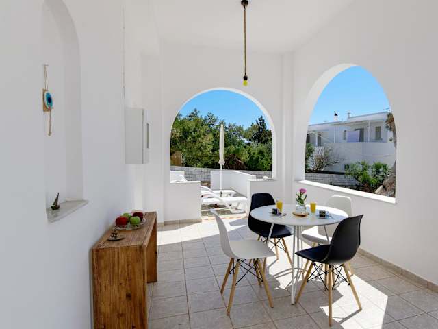 Die Unterkunft befindet sich in der Nähe des Strandes Paralia Drios, etwa 1,4 km vom Golden Beach entfernt. Die Umgebung bietet Zugang zu verschiedenen Stränden, darunter Paralia Lolantonis, der 1,9 km entfernt ist. Der venezianische Hafen und die Burg liegen 17 km von der Unterkunft entfernt. Der nächste Flughafen, der Flughafen Paros, ist 13 km entfernt.