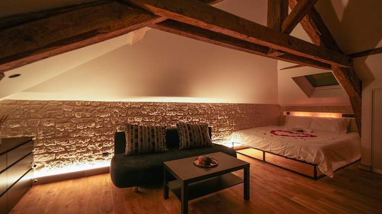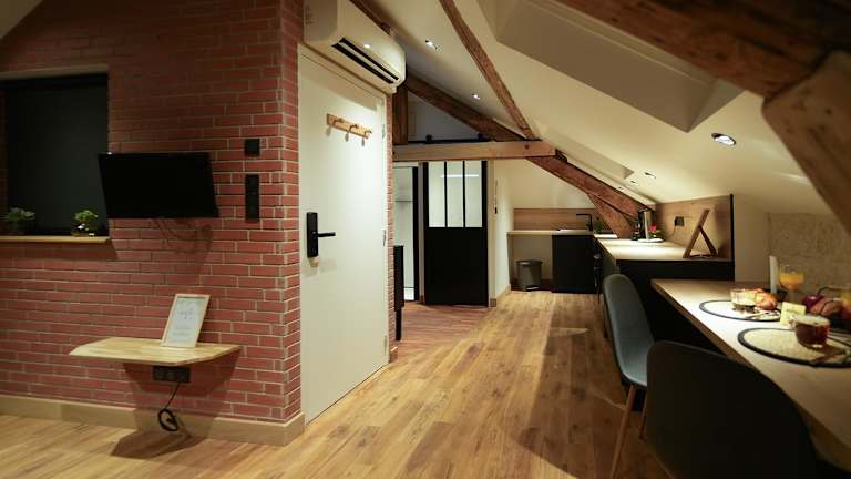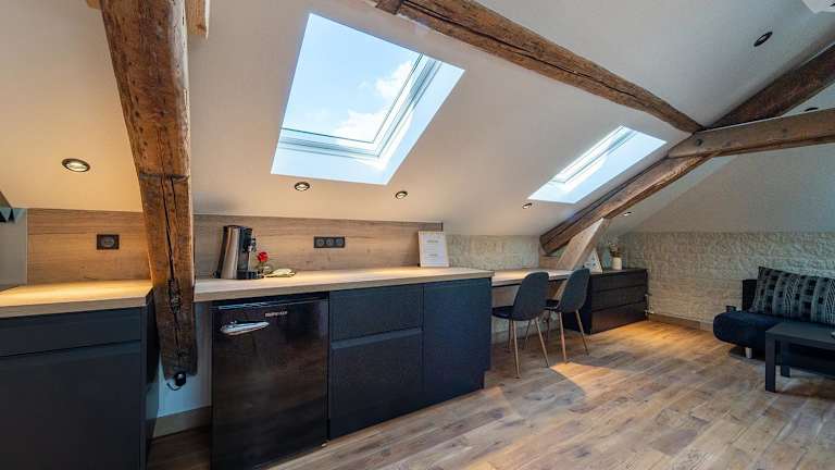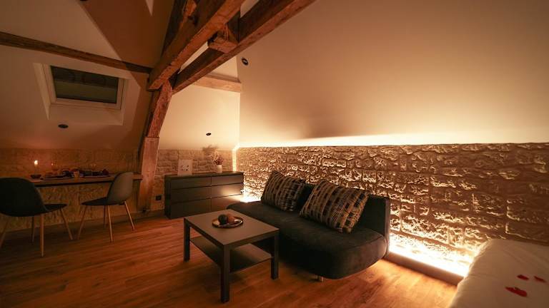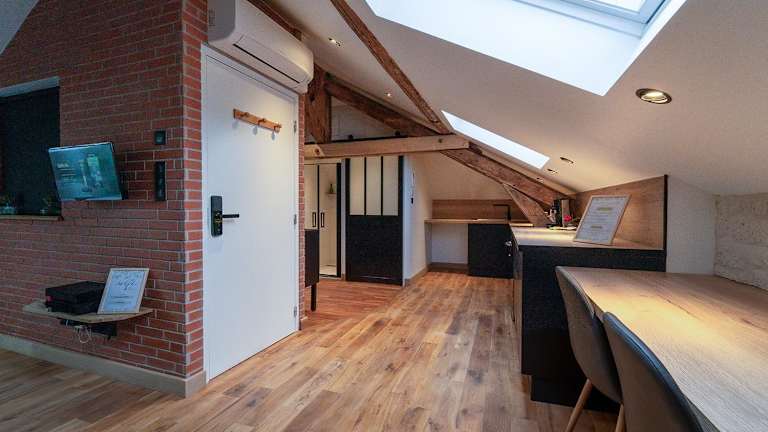 Die Ferienwohnung Evasion chic, spa et sauna sous les toits bietet kostenloses WLAN in der gesamten Unterkunft und ist klimatisiert. Sie ist modern eingerichtet und verfügt über einen Flachbild-TV sowie eine voll ausgestattete Küche.
