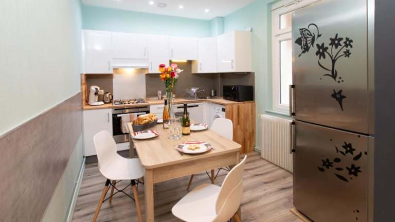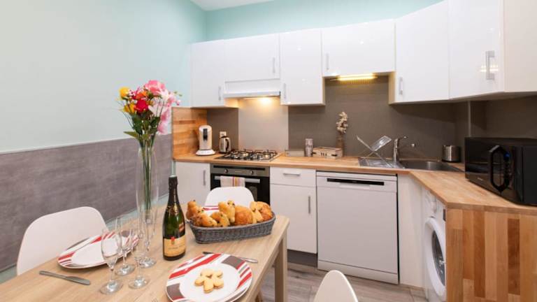 Die Ferienwohnung verfügt über 2 Schlafzimmer, ein Wohnzimmer, eine voll ausgestattete Küche mit Kühlschrank und Kaffeemaschine sowie ein Badezimmer mit Dusche und kostenlosen Pflegeprodukten. Handtücher und Bettwäsche werden bereitgestellt.