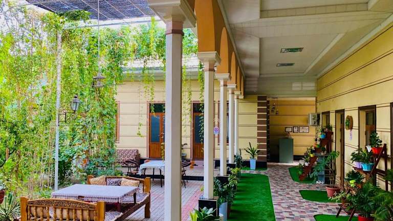 Das Guest House Evergreen in Marghilon ist eine charmante Unterkunft, die mit ihrem Garten, der Gemeinschaftslounge und der Terrasse eine entspannte Atmosphäre bietet. Das kostenfreie WLAN in allen Bereichen sorgt dafür, dass Sie immer mit der Welt verbunden bleiben können. Der Conciergeservice steht Ihnen zur Verfügung und ein Grill ist ebenfalls vorhanden. Genießen Sie den Blick auf den Garten von Ihrer eigenen Terrasse aus. Das kontinentale Frühstück am Morgen rundet Ihren Aufenthalt ab. Der internationale Flughafen Fergana ist nur 11 km entfernt.