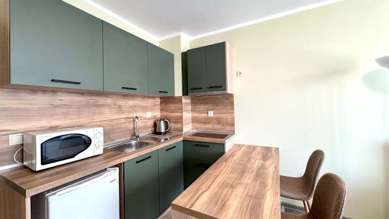 Jedes Apartment ist mit einer Küchenzeile, einem Essbereich und Kabel-TV ausgestattet. Reinigungsdienste und der Wechsel der Handtücher erfolgen alle 5 Tage, was im Preis inbegriffen ist.