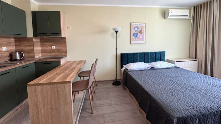 Die Evi Apartments 2 befinden sich im Badeort Pomorie, nur 200 Meter vom Strand entfernt. In der Umgebung sind Supermärkte und Restaurants in einem Abstand von 20 Metern zu finden. Die nächste Bushaltestelle liegt 100 Meter entfernt und der Aquapark Nessebar ist 10 km entfernt.